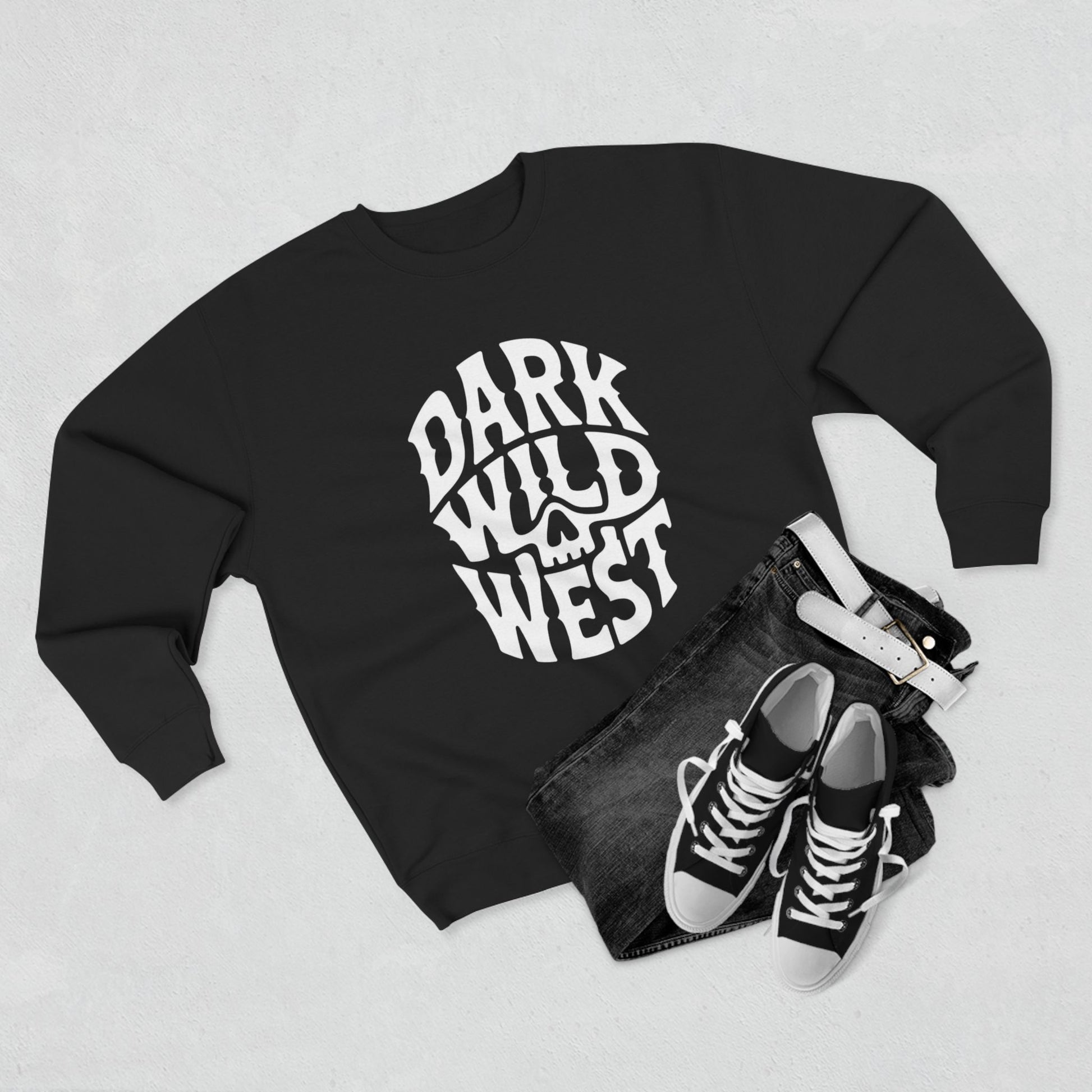 Dark Wild West Skull Logo Sweatshirt – Western Outlaw Streetwear Crewneck